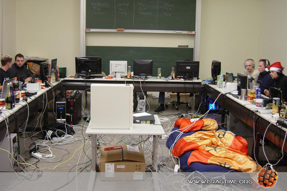 AnmeldenDie Fragtime ist eine klassische LAN-Party bei der sich Freunde übers Wochenende zum Zocken treffen. Angefangen hat es 1996 im Zimmer mit 2 Leuten die über ein Null-Modem Kabel vernetzt waren. Dank des BNC-Netzwerks wurde es immer mehr Leute. Nachdem der Keller voll war, mussten wir uns andere Räumlichkeiten suchen und die Teilnehmerzahl stieg auf 30-40 lustige Zockerfreunde an.